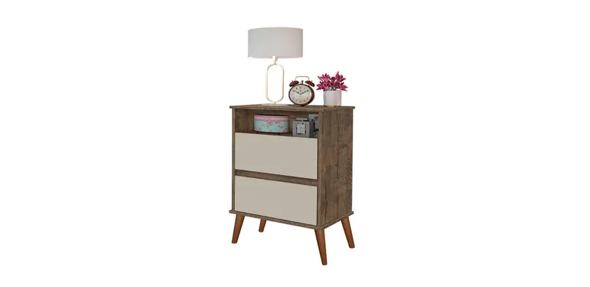 Mesa de Cabeceira São Miguel Onix 2Gav.-Canela/Off White