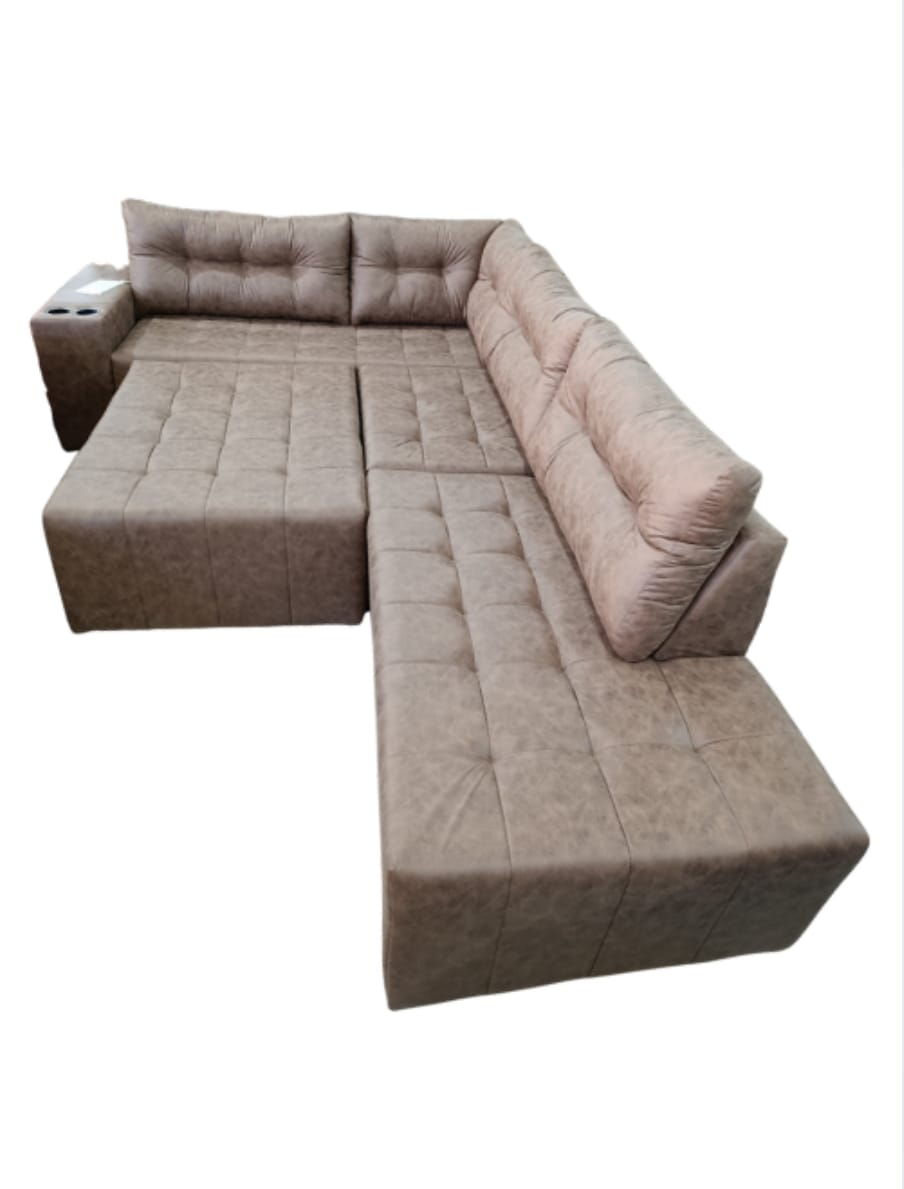 Sofá Estofados Solar Piazza Mod..167 Ches/Puff – Tec 825(Marrom Acetinado)